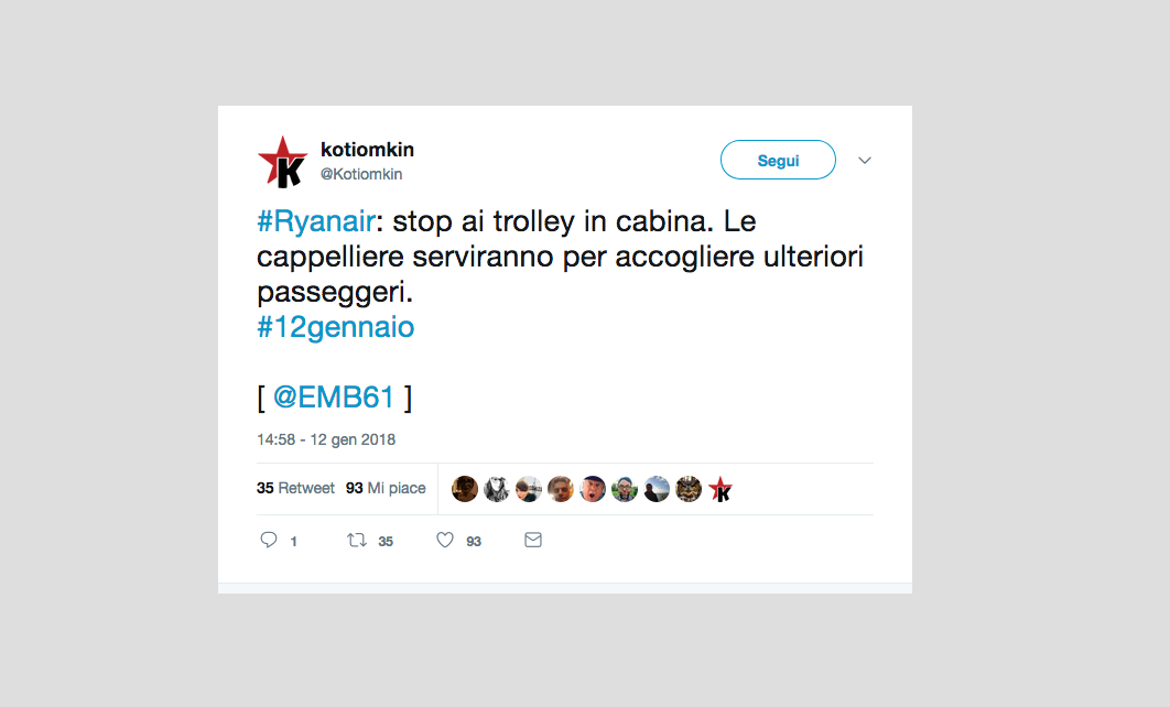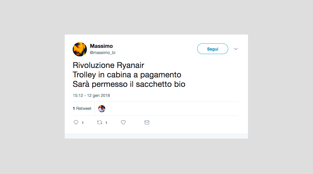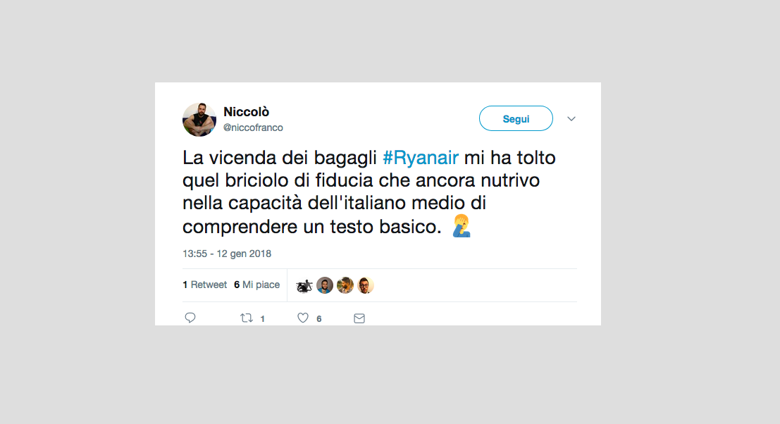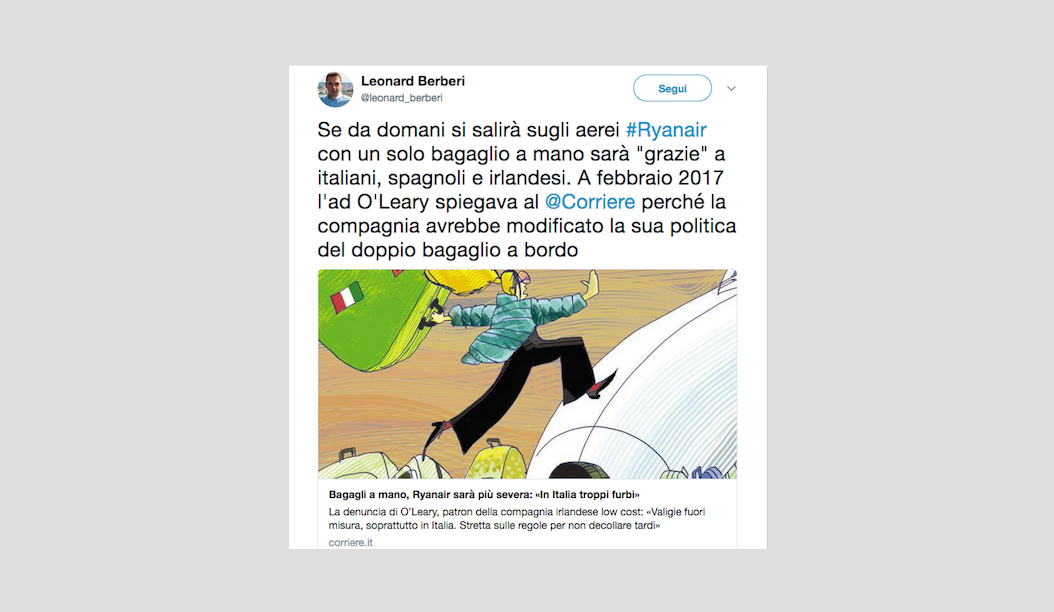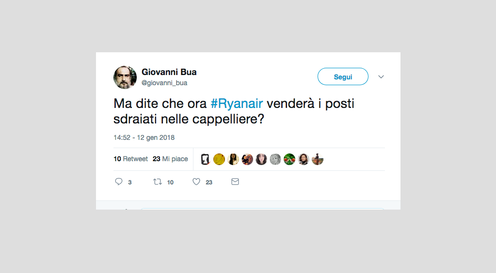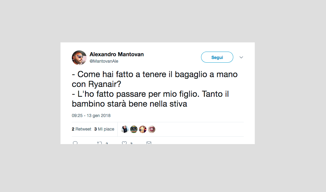 Le reazioni dei passeggeri alla notizia del nuovo regolamento di Ryanair che non permetterà più di portare due bagagli a mano gratis – 15 gennaio 2018