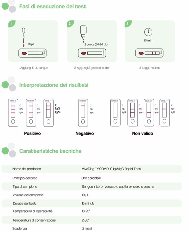 Semplice, rapido, efficace. Così, con una telefonata ed una mail si possono acquistare dei test Covid-19 senza nemmeno una prescrizione medica, come una pillola qualsiasi. Il VivaDiag è un test diagnostico in vitro, il cosiddetto test sierologico, che determina la presenza degli anticorpi lgM e lgG anti-COVID-19, nel siero o nel plasma e dirci quindi se siamo stati contagiati e se abbiamo sconfitto il Coronavirus.