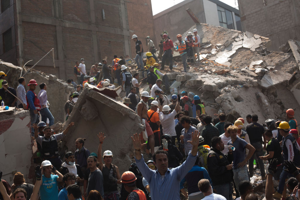 La ricerca di vite umane sotto un palazzo crollato a Città del Messico – 20 settembre 2017