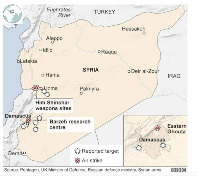 Stati Uniti, Francia e Gran Bretagna hanno attaccato la Siria con un’operazione mirata a colpire alcuni obiettivi, tra le città di Damasco e di Homs. Immediata la replica di Mosca, che ha subito avvertito che l’azione degli Usa e dei suoi alleati non resterà senza conseguenze.