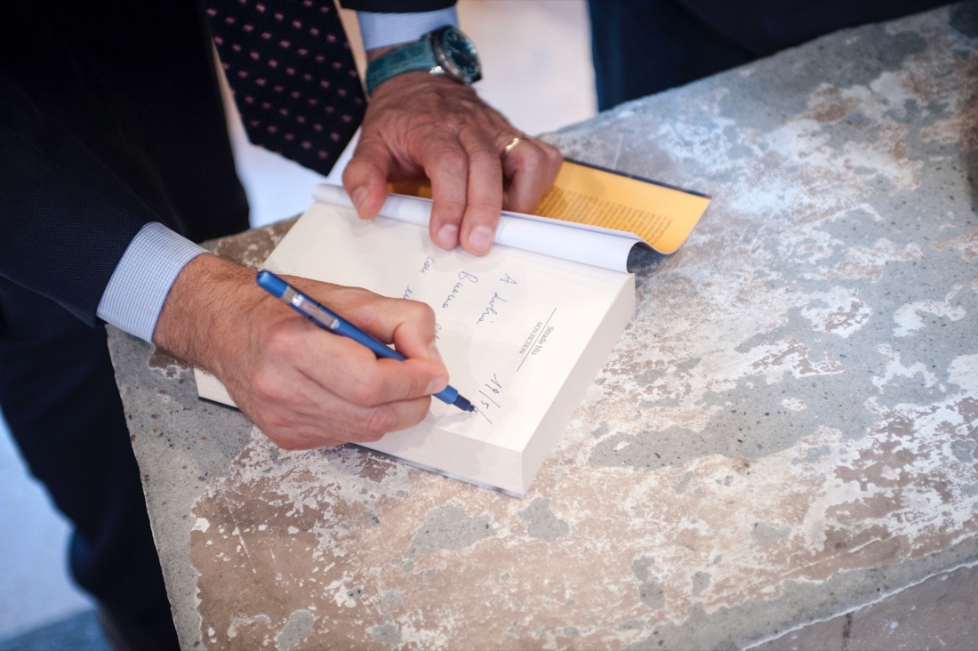 Pavia, 19 maggio – Il medico scrittore Pierdante Piccioni mentre autografa il suo libro “Pronto Soccorso” dopo l’intervista rilasciata durante la tappa pavese di Panorama d’Italia