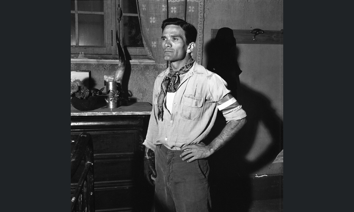 Pier Paolo Pasolini durante le riprese del film Il Gobbo (1960) di Carlo Lizzani, in cui recitò nel ruolo di Leandro detto “er monco”.