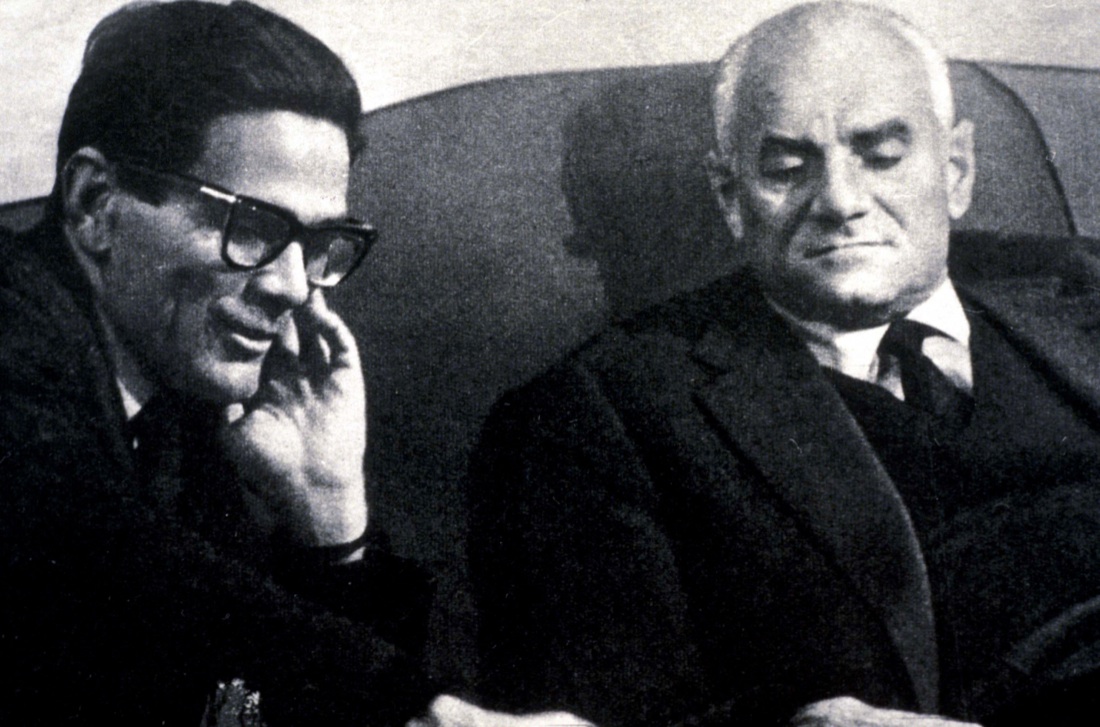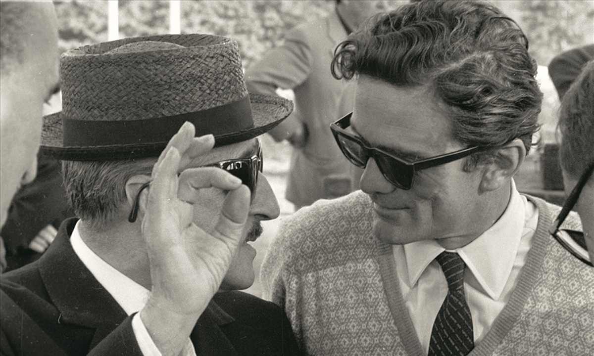 Pier Paolo Pasolini con Marcello Mastroianni.