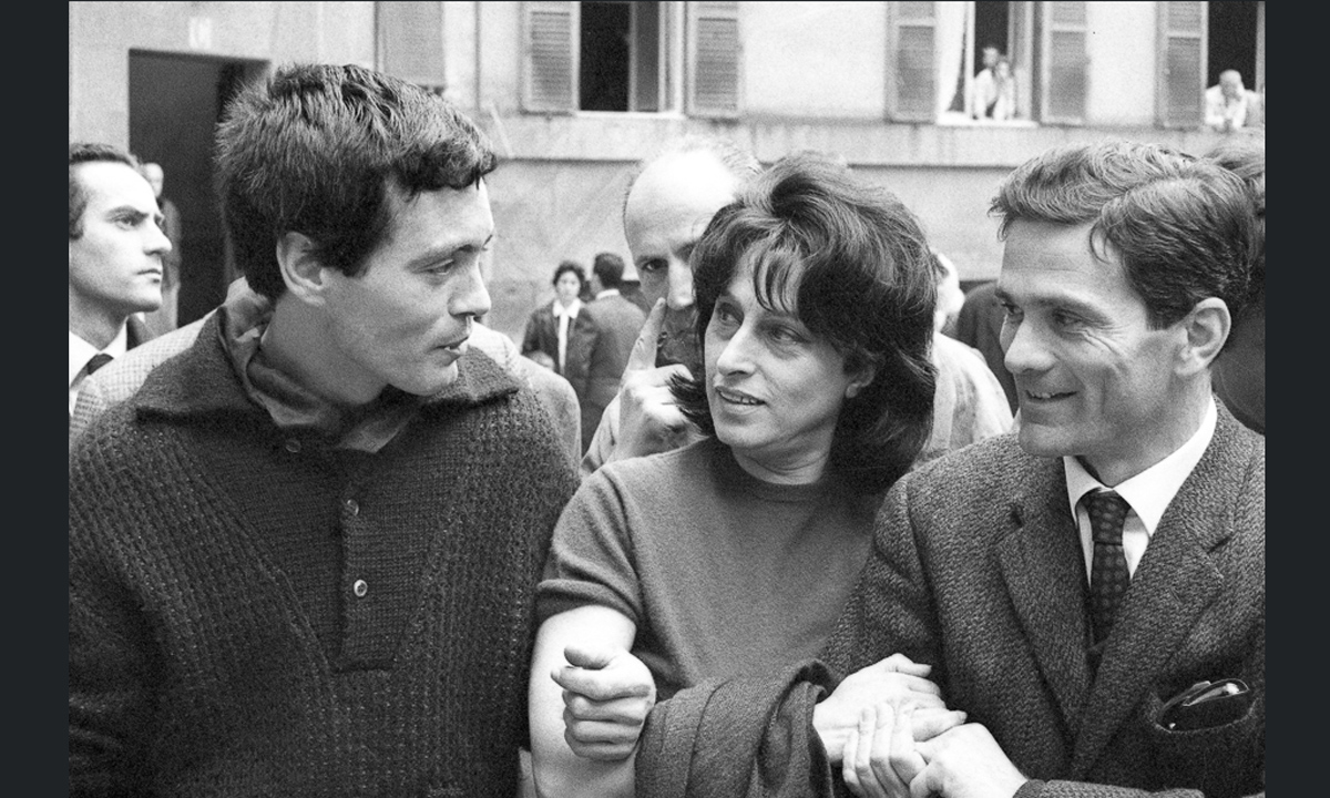 Pier Paolo Pasolini con Jean Luc Godard e Bernardo Bertolucci, durante un incontro per il film Amore e Rabbia (1969).