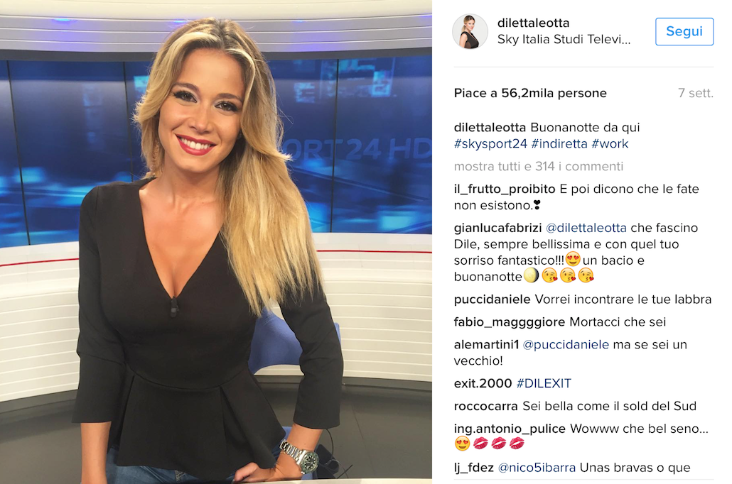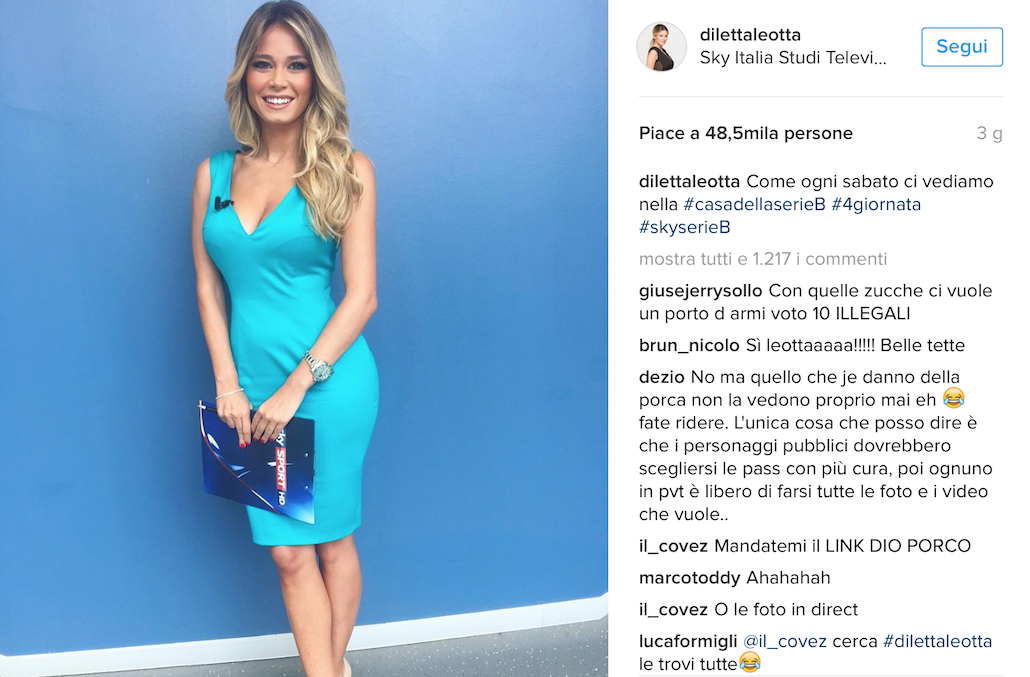 Ma chi è Diletta Leotta? Classe 1991, laureata in Giurisprudenza, ha esordito a Sky come “meteorina” ma ha scalato in fretta il successo imponendosi come volto di Sky Sport, dove conduce con successo i programmi di approfondimento calcistico sulla Serie B. Regina dei social, la giornalista conta oltre 600 mila fan su Facebook, oltre 700 mila su Instagram e c’è già chi l’ha incoronata “erede” di Ilaria D’Amico.