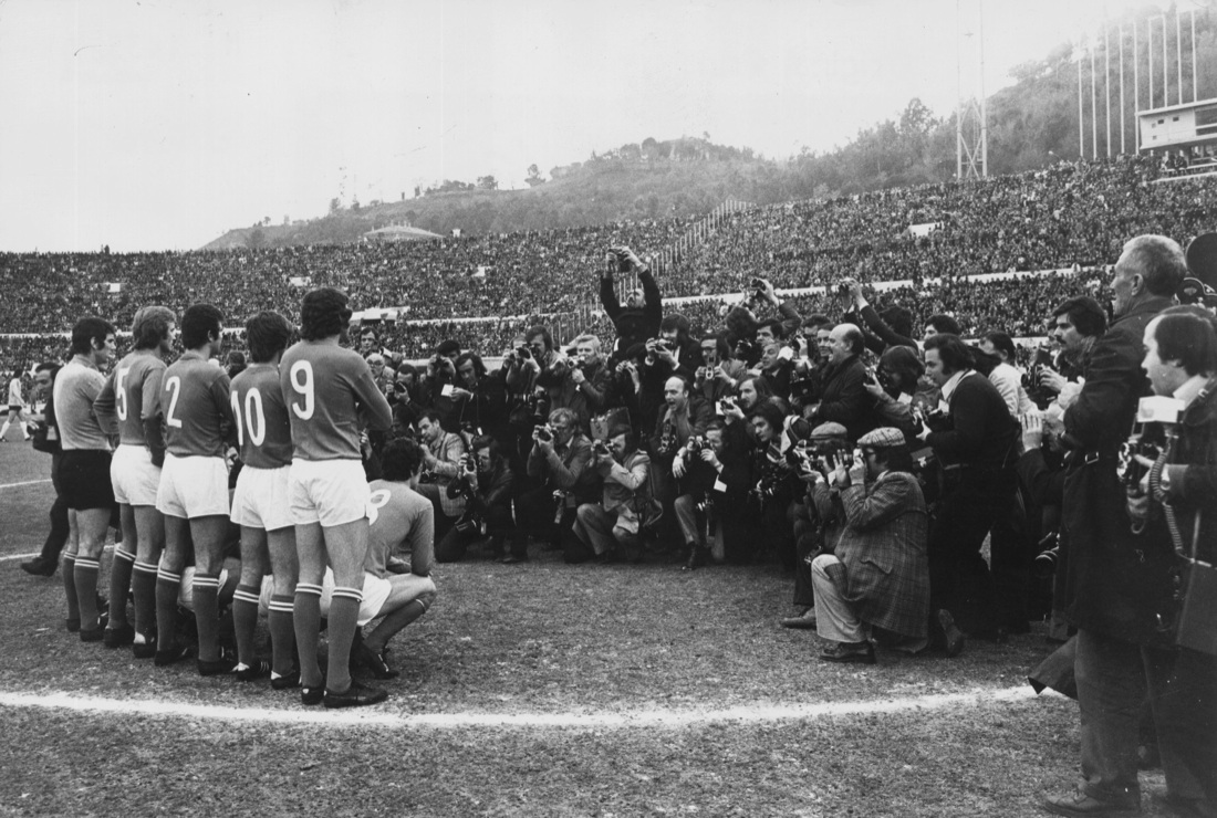 Pietro Anastasi prima dell’incontro Italia – Jugoslavia del 1968. Sarà autore del secondo gol al 32′ minuto.