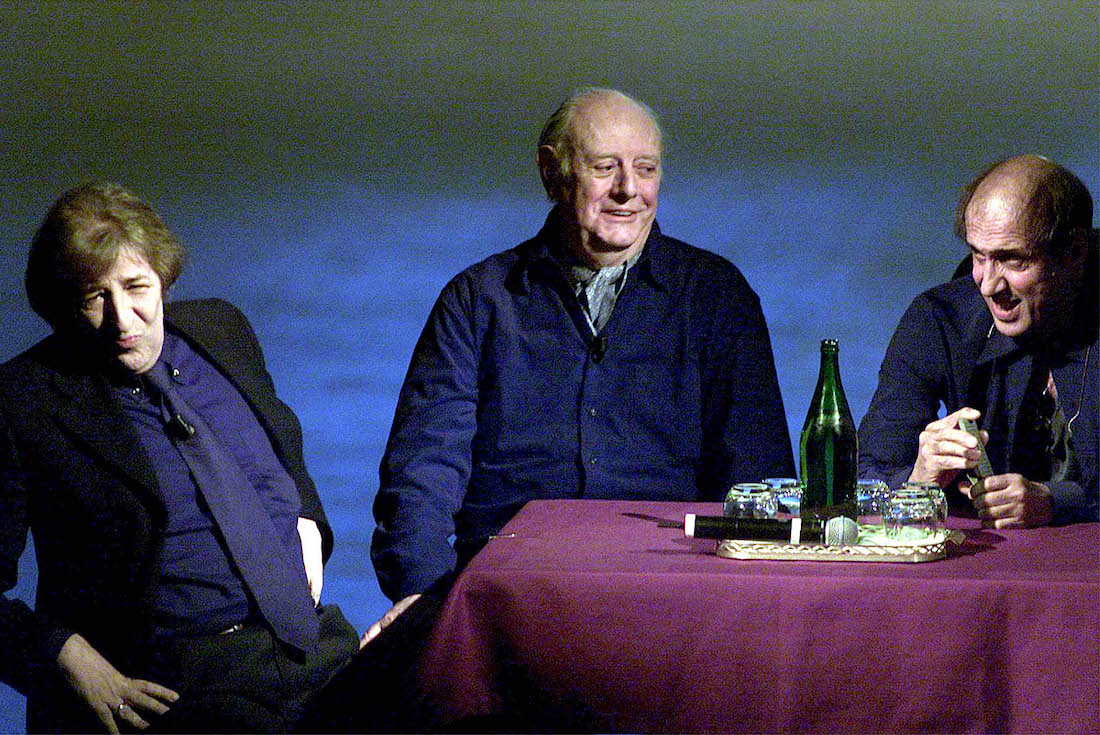 Giorgio Gaber, Dario Fo e Adriano Celentano durante la trasmissione ” 125 Milioni di caz…te ” il 17 maggio 2001