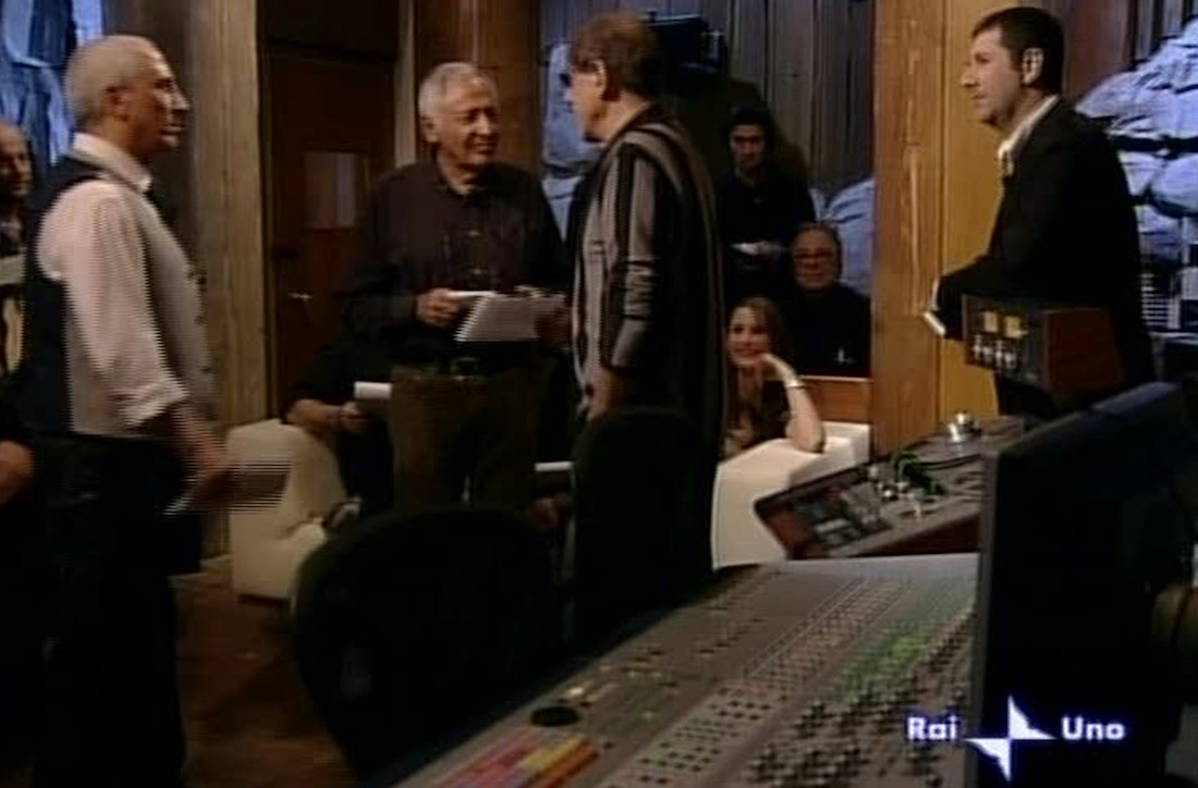 Adriano Celentano con Mogol, Gianni bella e Fabio Fazio