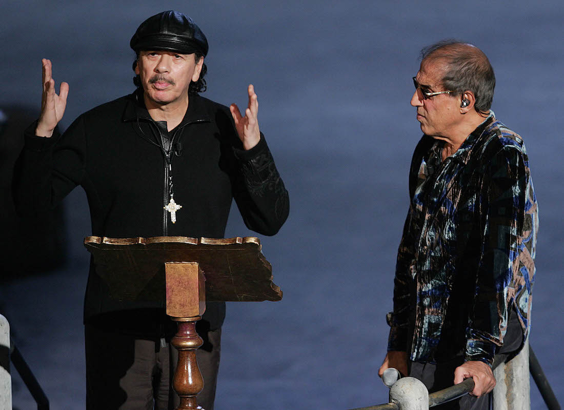 Adriano Celentano con il chitarrista americano di origini messicane Carlos Santana ospite dell’ultima puntta del programma