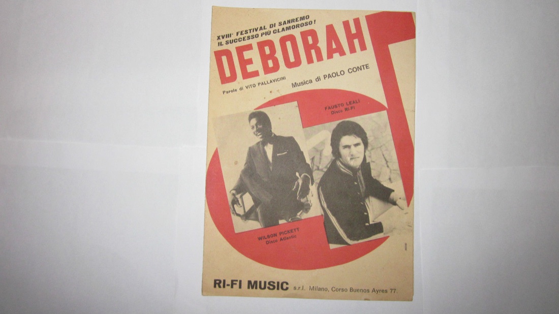 Manifesto pubblicitario del successo sanremese di Fausto Leali e Wilson Pickett, scritto da Paolo Conte con Pallavicini