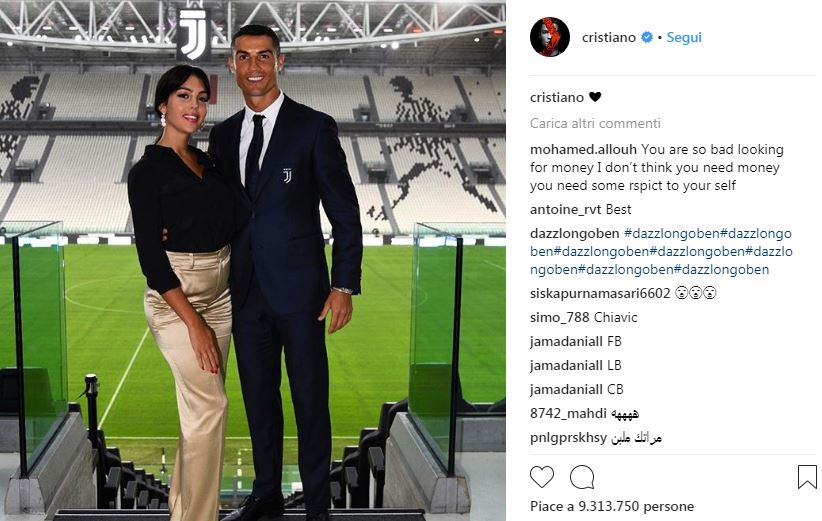 Otto milioni e mezzo di like per un “Buongiorno”; quasi 12 milioni di like per la sua prima foto con la maglia della Juventus e 11 milioni di “Mi piace” mentre posa al mare con la fidanzata Georgina e il figlio maggiore.