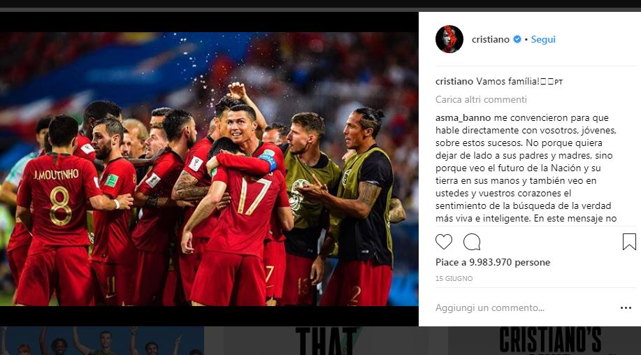 Oltre a essere una macchina per fare gol, CR7 è pallone d’oro anche via social network dove tra sponsorizzazioni e post privati ogni sua foto non fa che accrescere la sua potenza da influencer.