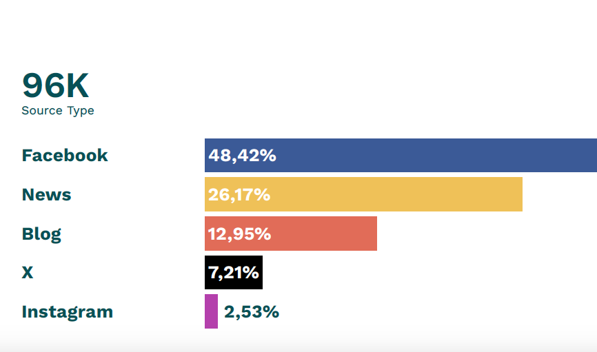 Circa la metà del parlato complessivo ottenuto dalla menzione “Lampedusa” è stato assorbito da Facebook, con una percentuale totale del 48,42%, mentre le tre principali piattaforme social raggiungono assieme una quota del 58,16%. I siti di news e di informazione invece riescono a prendersi una fetta di attenzione del 26,17%.