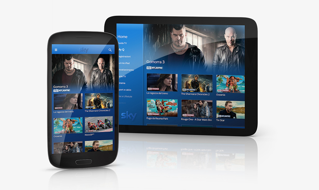 Tramite la nuova app Sky Go Q (che sostituisce la vecchia Sky Go) la programmazione Sky è accessibile anche a tutti i device mobili connessi a Internet (tablet o smartphone), sia mediante rete WiFi che cellulare. E può essere eventualmente scaricata in locale per essere poi rivista offline, senza bisogno di erodere il traffico dati.