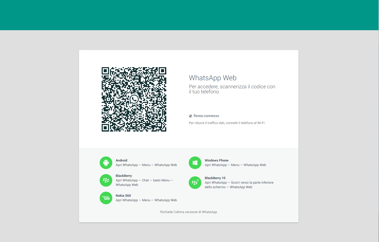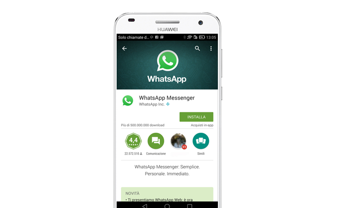 1. Scaricare l’app WhatsApp sul telefoninio (Android, iOS, Windows Phone, BlackBerry e Nokia Serie S60) e aggiornarla all’ultima versione