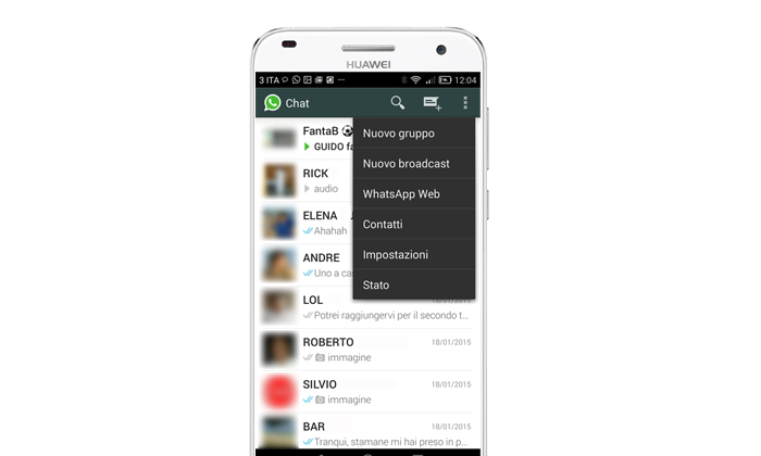 3. Tornare sul telefonino, aprire WhatsApp, aprire il menu impostazioni in alto a destra e selezionare WhatsApp Web