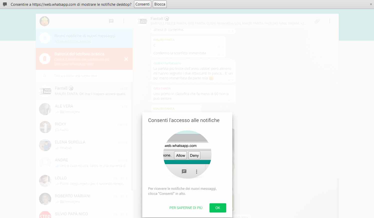7. Attivare le notifiche cliccando “Consenti” sulla barra pop sulla parte alta dello schermo