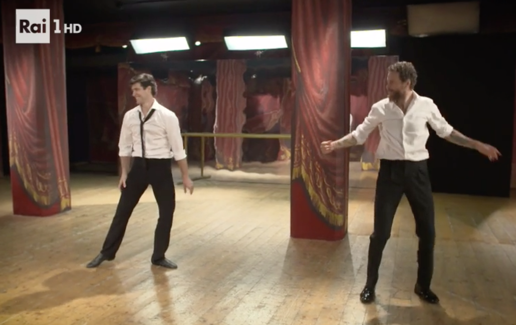 Uno dei momenti cult dello show di Rai 1 è stato senza dubbi il duetto tra Roberto Bolle e Virginia Raffaele, che per l’occasione si è trasformata in Carla Fracci, uno dei suoi personaggi più riusciti, già proposto lo scorso febbraio durante il Festival di Sanremo. E se sul palco dell’Ariston Bolle e l’attrice romana si erano cimentati nella coreografia de La notte vola, di Lorella Cuccarini, per l’evento La mia danza libera hanno scelto un passo a due surreale, con la Raffaele-Fracci che pesta i piedi all’étoile italiana, lo spintona, lo costringe ad accennare i passi della Macarena, tenta di rubargli la scena e si spinge oltre l’inosabile, facendogli ballare – spalle in movimento e braccia molli – il tormentone di Rovazzi Andiamo a comandare.
