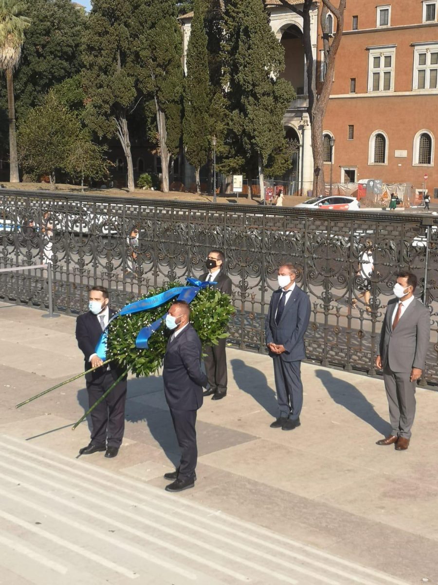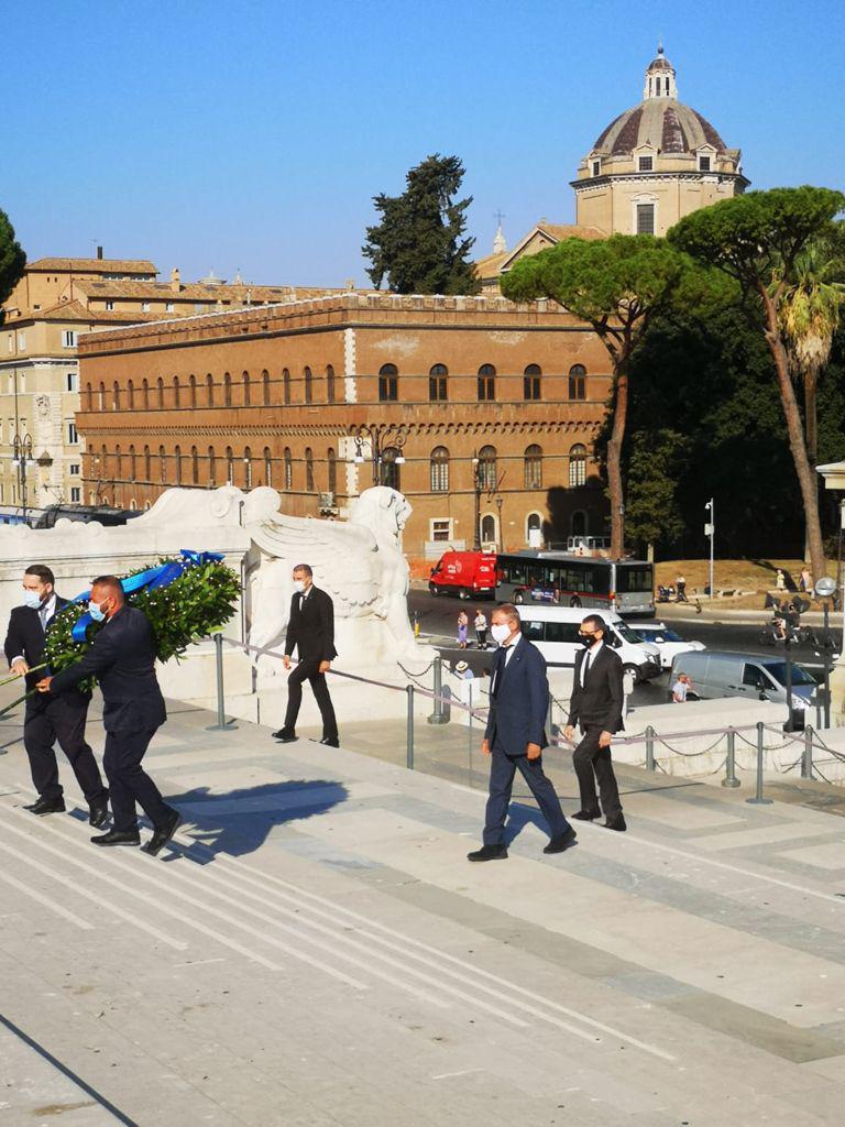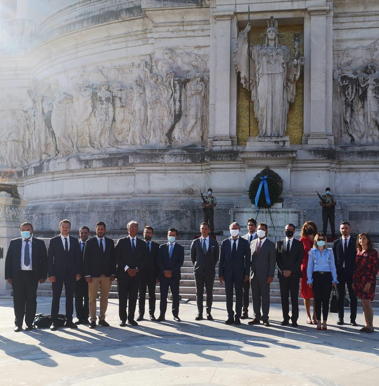 Questa mattina il presidente del Copasir, Adolfo Urso, e una delegazione europea dei partecipanti domani al seminario “geopolitico” per giovani parlamentari europei promosso da Farefuturo in partenariato con l’”International Repubblican Institute” e il Comitato Atlantico, hanno deposto una corona di fiori all’altare della Patria in memoria delle vittime dell’11 settembre e dei militari civili caduti in Afghanistan nell’adempimento del loro dovere a servizio delle missioni USA e NATO in quel Paese.