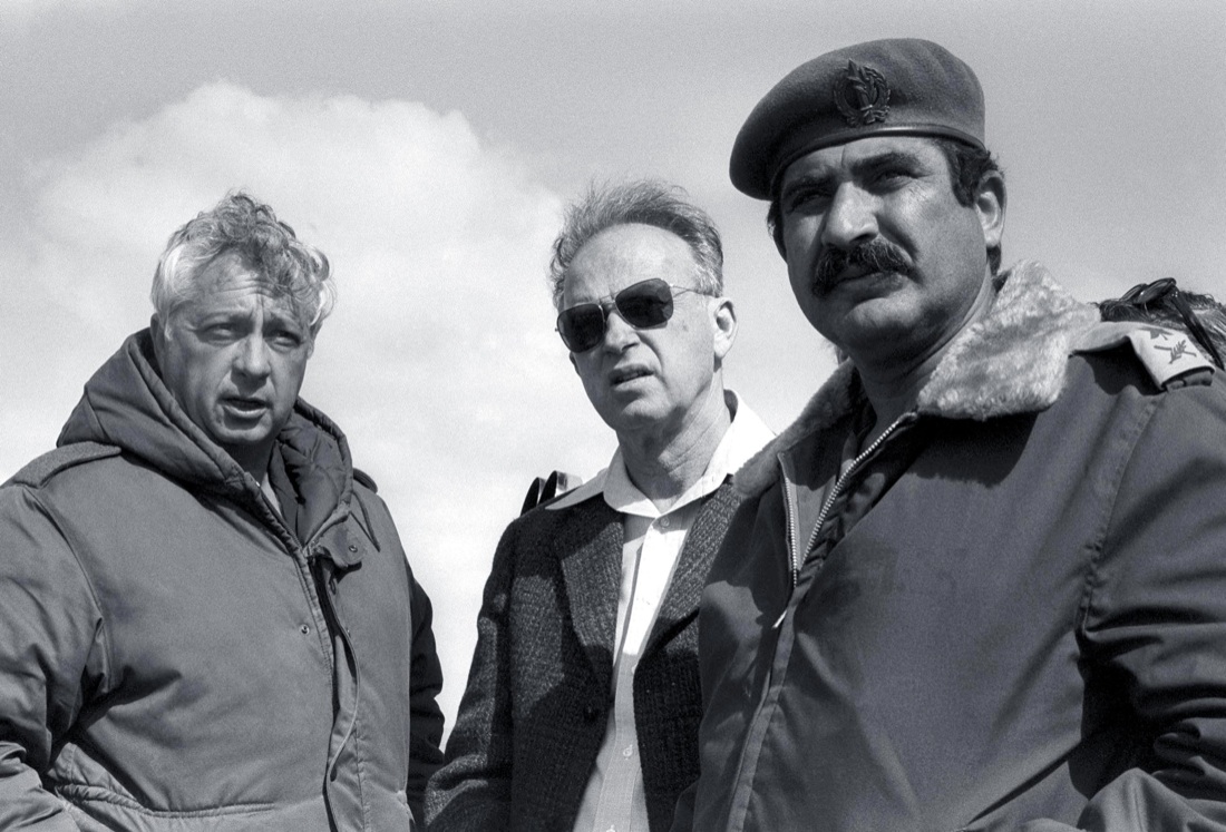 Ariel Sharon (sx) e Rabin nel Sinai. 1976.