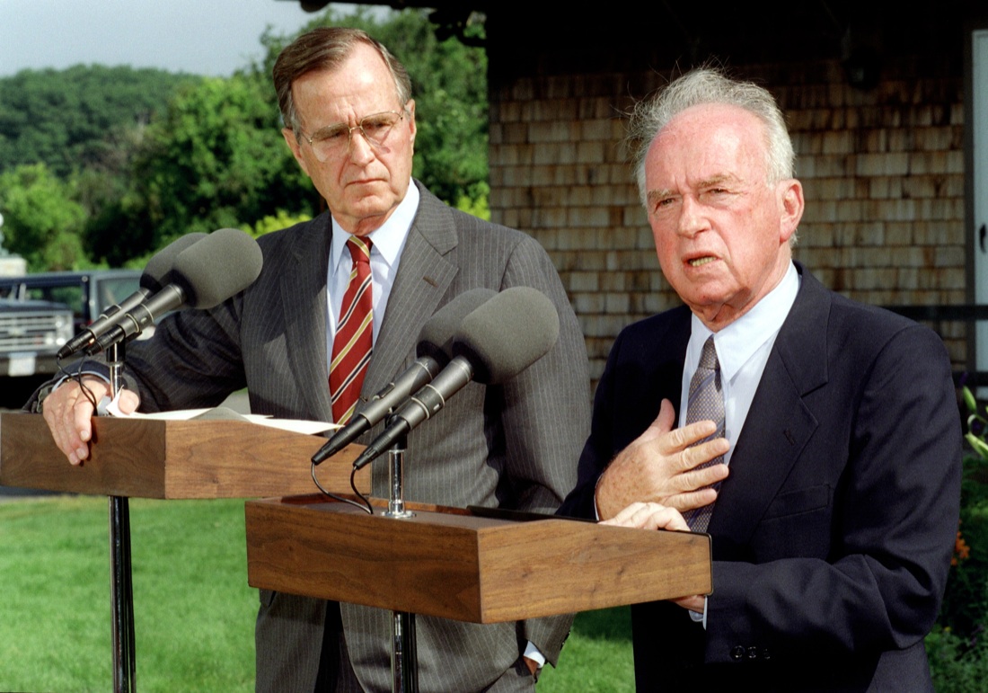 In quegli anni il leader israeliano lavora a fianco di Shimon Peres per la costruzione del dialogo con i Palestinesi di Yasser Arafat. Tornato premier dopo le vittoriose elezioni del 1992, nel 1993 porta a termine gli storici accordi di Camp David con il leader Olp Yasser Arafat. Con Shimon Peres e lo stesso Arafat sarà insignito l’anno seguente del Nobel per la Pace.