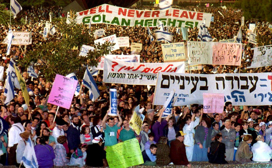16 novembre 1992. 50.000 coloni si radunano per protesta contro i negoziati di pace promossi dal governo di Rabin.