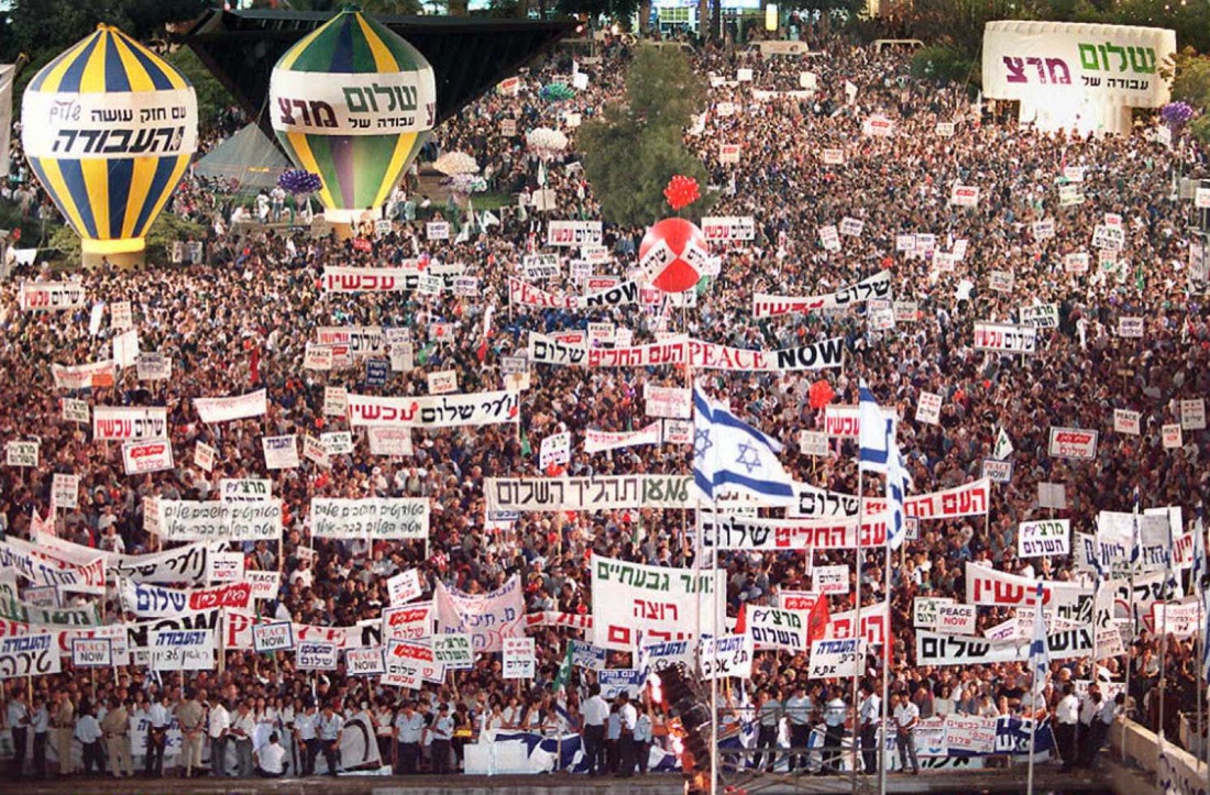 Tel Aviv. 4 novembre 1995. La manifestazione per la pace che si concluderà tragicamente con l’assassinio di Rabin.