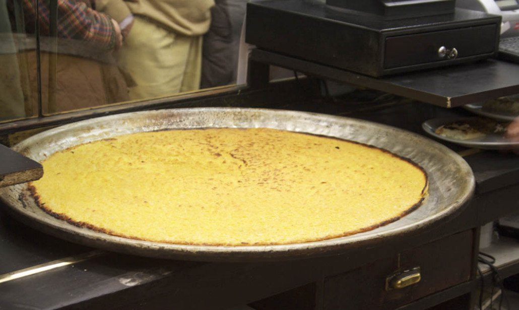 Siamo nel cuore antico della città e la tradizione è evocata sin dal nome visto che il riferimento è al sale pestato, monopolio dell’antica repubblica e sua generosa fonte di sostentamento. Il bianco dei minuscoli granelli, ottenuto strapazzandolo nel mortaio, è stato sostituito dal giallo vivo e abbondante della farinata dorata, fragrante, preparata in un tegame extra large stagnato e lucido. Potete fare come i genovesi, che passano da qui a comprarla ogni giorno, per gustarla da sola oppure in abbinamento a una torta di bietole, cipolle, riso, polpettone, acciughe.