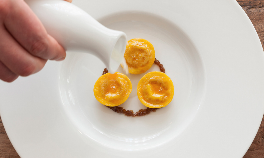 Il ristorante stellato del lussuoso Palazzo Seneca, il primo hotel a riaprire nel centro storico di Norcia, è ora affidato alle mani esperte di Valentino Palmisano, chef giovane ma con alle spalle un curriculum sontuoso. È stato allievo di Alfonso Iaccarino, Bruno Barbieri e Oliver Glowig, ha lavorato in Cina e in Giappone ai massimi livelli prima di approdare in Umbria, dove ha iniziato a vestire d’eleganza la tradizione, a sperimentare mantenendo un ossequio pieno alle radici del territorio. Tra i suoi piatti, un agnello da latte con porchetta, pecorino e sedano candito. Ma anche un semplicissimo spaghetto al pomodoro, ha dietro un lavoro di cesello delle sfumature minime: il gran gusto, d’altronde, non è mai improvvisazione.