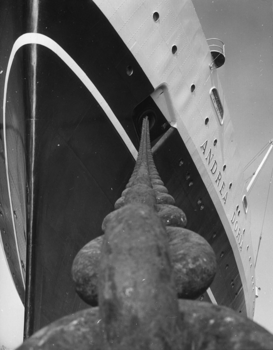L’imponente chiglia dell’Andrea Doria ormeggiato a New York pochi mesi prima dell’incidente.