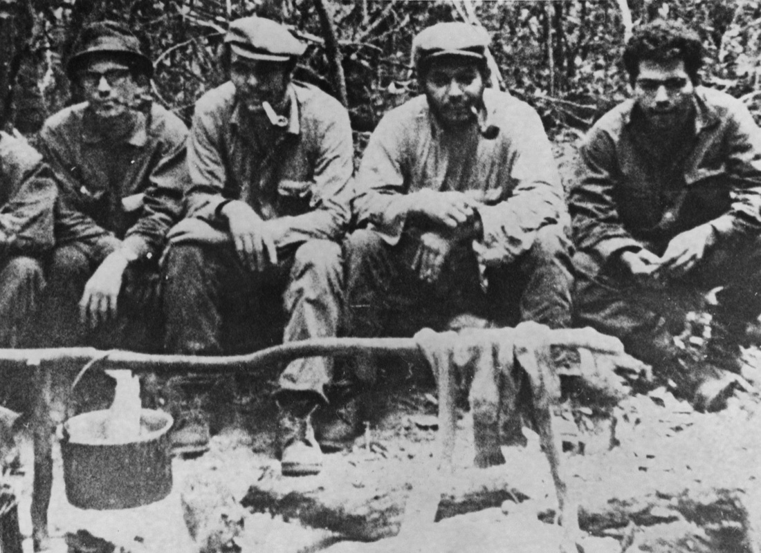 Che Guevara (secondo da sinistra) con i membri dell’ELN boliviano al campo d’addestramento di Nancahuazu.