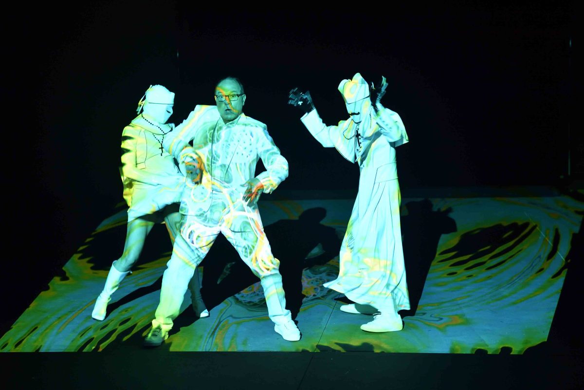 Il protagonista minimizza: “Luca mi ha sorretto molto, il fiato un po’ meno”. Non aveva mai ballato prima in scena, “e l’ho fatto molto poco anche nella mia vita, in discoteca ci andavo per sentire i gruppi musicali. Per fortuna ho senso del ritmo…”, scherza. Ma anche se ogni tanto chiede “la sedia per favore” a 67 anni appena compiuti trasmette meticolosità (“questa la rifacciamo”) ed entusiasmo. E ogni tanto nel balletto con le suorine, diretto da Carboni (“smarrimento… idea!”) tira fuori pure la mimica del suo mitico Mimmo, il ragazzone imbranato che faceva coppia con la Sora Lella in Bianco, rosso e Verdone.