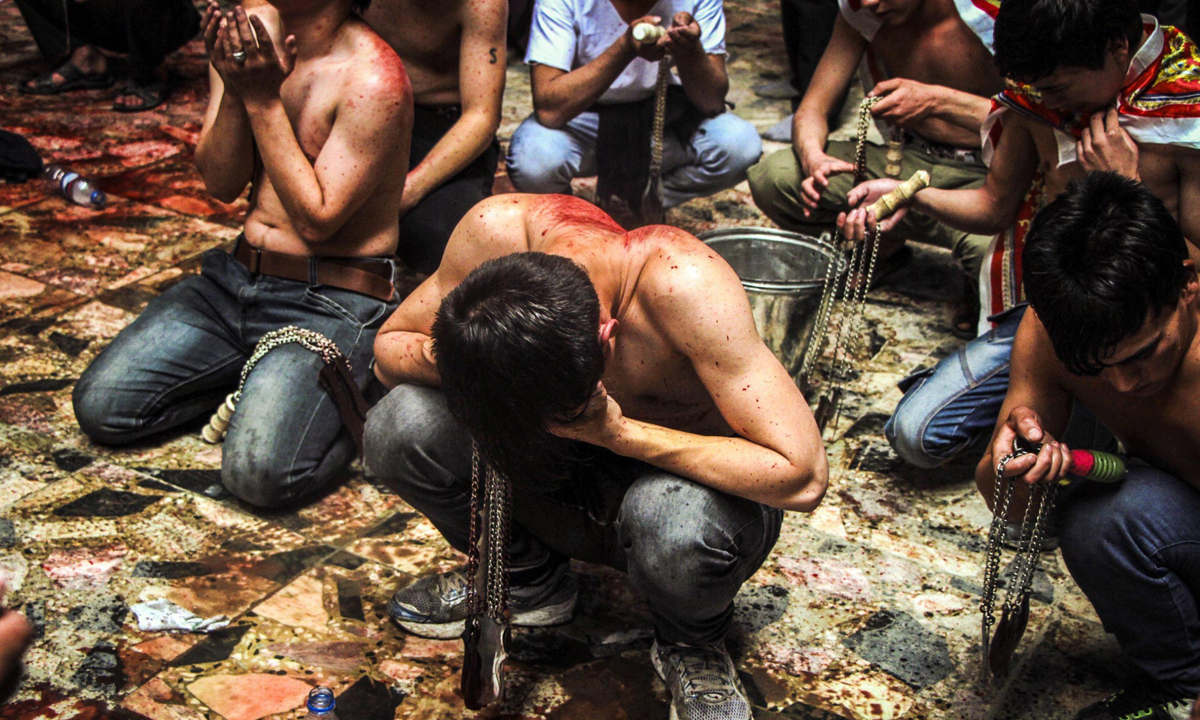 Durante l’Ashura le comunità sciite (circa il 10% dei musulmani, presenti principalmente in Iran, Iraq, Bahrein, Afghanistan, Libano e Pakistan), manifestano lutto e afflizione in ricordo dell’assassinio dell’Imam Hussein. Nel corso delle celebrazioni, maschi adulti e bambini sfilano in corteo al seguito della sua salma immaginaria, piangendo, disperandosi e autoflagellandosi con fruste metalliche, mazzi di catenelle o lame, al ritmo di tamburi, in segno di dolore per l’ingiustizia subita e per mostrare la disponibilità a sottomettersi volontariamente alla tortura o a morire per la difesa della causa.
