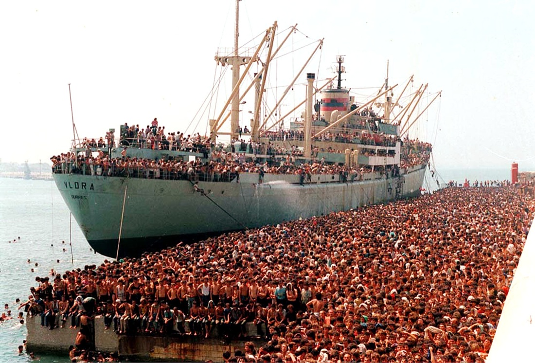 1991, profughi albanesi diretti verso le coste pugliesi