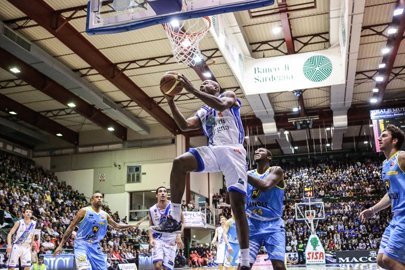 Big-match: Acqua Vitasnella Cantù-Acea Roma 83-80. Pietro Aradori mette la firma sulla vittoria brianzola con una grande prestazione offensiva (25 punti, con 6/6 da due e 3/5 nelle triple), ma anche con la prontezza difensiva di fare fallo su Goss a meno di 3″ dalla sirena per impedire la tripla del possibile overtime da parte di Roma. I due errori dalla lunetta lasciano quindi il tabellone acceso su un 83-80 per una Cantù apparsa ancora sotto tono rispetto a quella di inizio stagione, ma che ritrova le giocate decisive di Joe Ragland (16 punti), l’effetto-collante di Martin Leunen (12 punti, 7 rimbalzi e tanta difesa), oltre a un Michael Jenkins impreciso e poco prolifico, ma ottimo distributore di assist (6, uno in meno dei punti a referto). Per l’Acea Roma, invece, la solita analisi dall’addio di Jordan Taylor in poi: malgrado l’impegno di Phil Goss (22 punti in 31′ sul parquet), alla squadra di coach Dalmonte manca un play che ottimizzi le qualità tecniche di tutti gli altri, evitando pure le 18 palle perse collezionate al Pianella. Dove un ottimo Jimmy Baron (20 punti, con 5/6 totale al tiro) ha fatto registrare il suo primo errore ai liberi di tutto il Campionato: la comunque invidiabile statistica è ora di 42 realizzati su 43 tentativi.