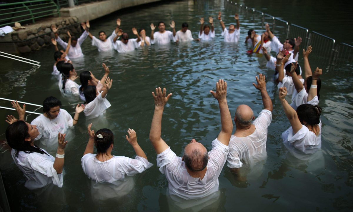 In queste foto di Abir Sultan, dei pellegrini giunti in Israele dal Brasile partecipano a uno dei momenti più sacri del loro viaggio in Terrasanta, rinnovando nel battesimo l’appartenenza alla comunità cristiana. Eccoli immergersi nelle acque del Giordano – il fiume in cui Gesù ricevette il battesimo da Giovanni il Battista – presso lo Yardenit, poco a sud del Lago di Tiberiade, visitato ogni anno da mezzo milione di fedeli e turisti.