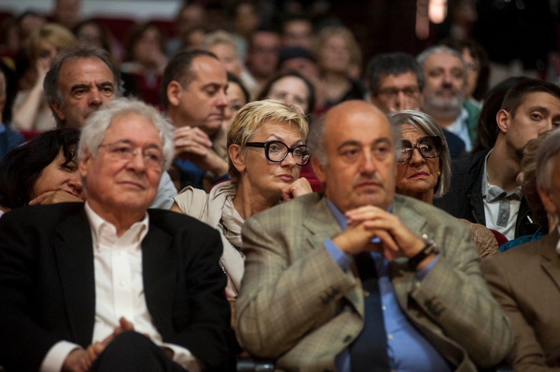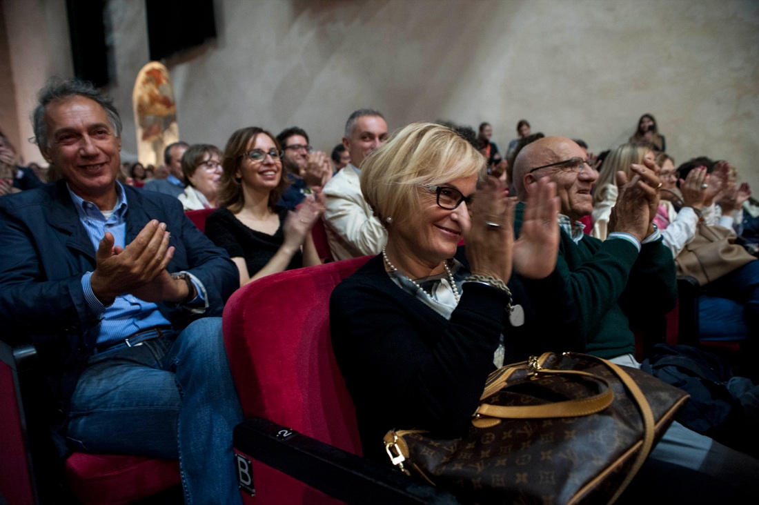Ed è da questi ideali che nasce anche il progetto per la bellezza della valle che sorge sotto Solomeo, con la costruzione di tre parchi realizzati con risorse della Fondazione Federica e Brunello Cucinelli che ha acquistato e demolito alcuni capannoni industriali degli anni ’70 per renderla più vivibile. “Anche qui, a Spoleto, dove molto del centro storico è stato restaurato, forse c’è ancora da fare”, dice Cucinelli. Mulè prende la palla al balzo: “C’è un appello dell’amministrazione comunale che chiede sostegno ai privati: servono 5 mila euro per restaurare la scalinata di Piazza Pianciani. Ci sta?”. Cucinelli non si tira indietro: “Sì, certo – risponde -. Ma ognuno di noi è chiamato a contribuire. Dobbiamo tutti occuparci con rispetto delle istituzioni, recuperare un po’ d’amore per lo Stato”.