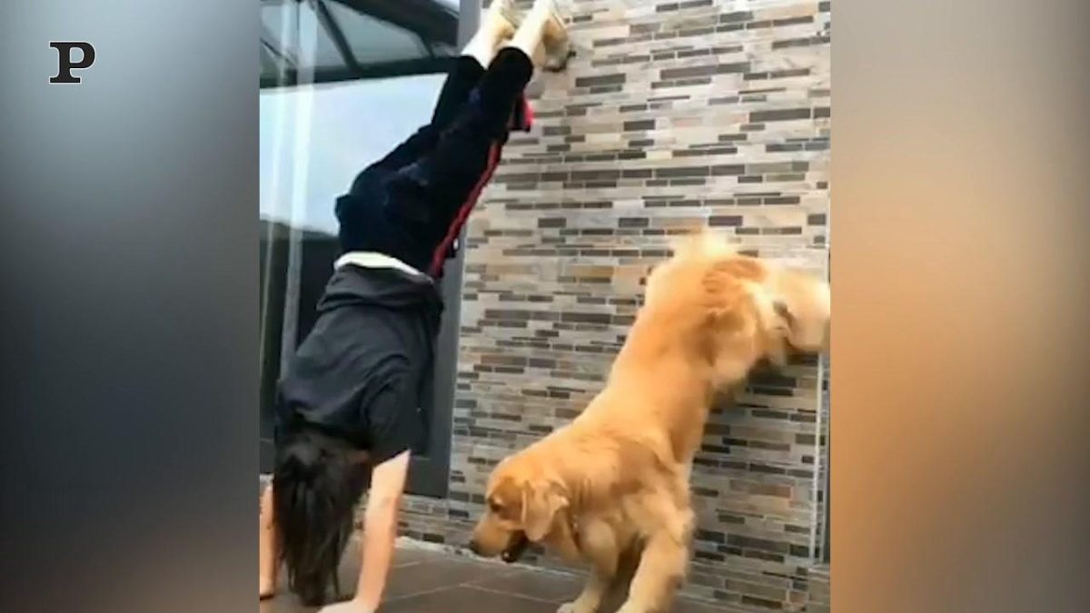 Settembre è il mese dei buoni propositi. Lo sa bene questo dinamica coppia che per mantenersi in forma si concede ogni mattina qualche minuto di ginnastica. La padrona si allunga, si piega, fa stretching ed il cane la segue, imitando perfettamente ogni sua posizione. Un vero atleta!