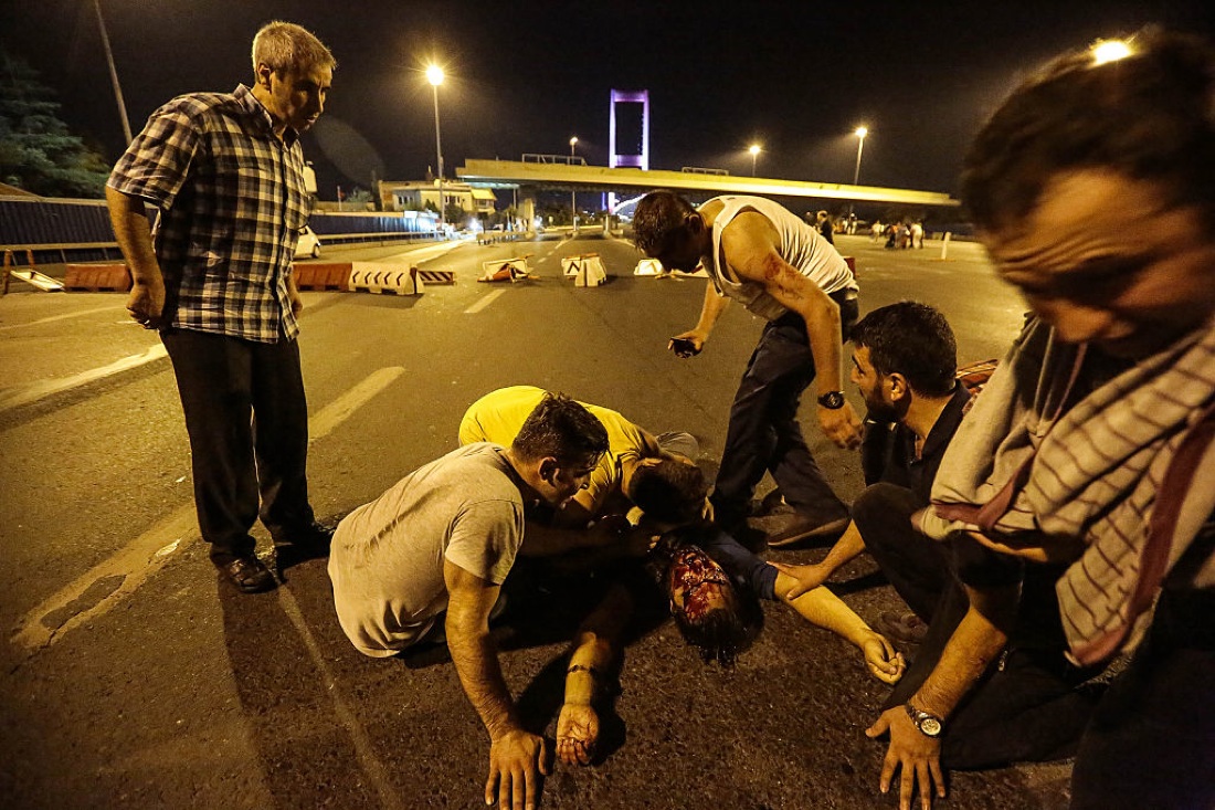 Un ferito a terra durante gli scontri con i militari su uno dei ponti sul Bosforo a Istanbul – 16 luglio 2016