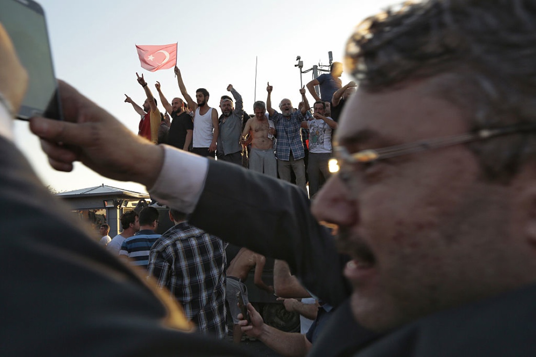 Sostenitori del presidente Erdogan nelle strade di Istanbul contro il golpe dei militari – 16 luglio 2016