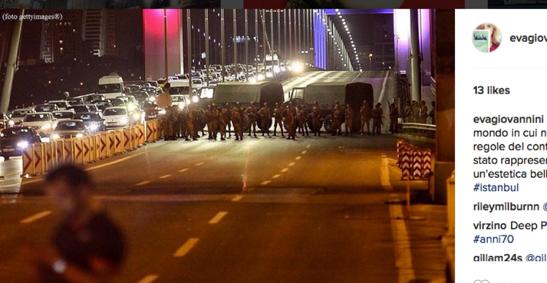 Una foto postata su Instagram del blocco dei ponti sul Bosforo da parte dei militari in Turchia – 15 luglio 2016
