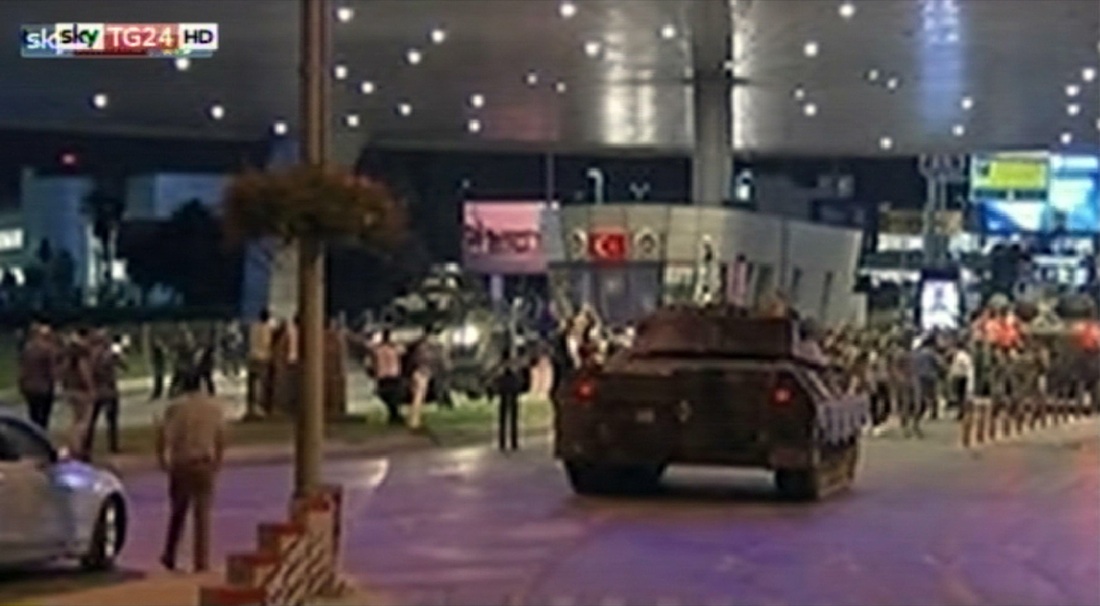 Carroarmati dei militari turchi entrano all’aeroporto di Ataturk – 15 luglio 2016