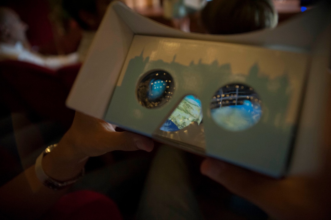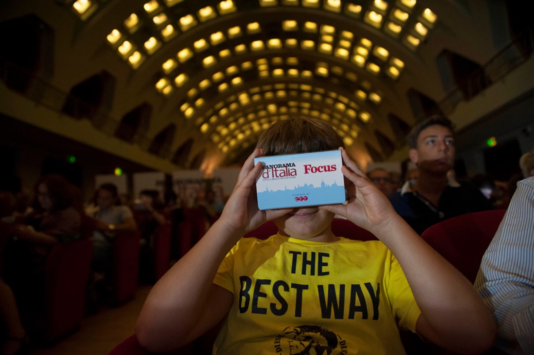 Dallo spazio alla terra, il direttore di Focus a chiusura evento introduce l’esperienza di virtual reality resa possibile dalla Cardboard e dalla app per smartphone realizzate ad hoc dal magazine per i partecipanti all’evento. Indossando la particolare mascherina, senza alzarsi dalla sedia, il pubblico ha potuto esplorare la Stazione Spaziale Internazionale che orbita a 400 km dalla superficie terrestre a 28.000 km/h e curiosarci dentro mettendo il naso nelle stanze private degli astronauti, nelle aree ricreative, nei vari moduli e poi fuori, tutt’intorno, per un’esplorazione spaziale molto particolare.