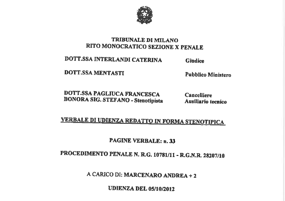 Le 35 pagine del verbale dell’interrogatorio di Francesco Messineo – in qualità di teste – davanti ai giudici di Milano nel processo per diffamazione contro il direttore Giorgio Mulè e i due giornalisti Riccardo Arena e Andrea Marcenaro. Giudice: Caterina Interlandi. Pm: dottoressa Mentasti. Messineo risponde alle domande del pm, dell’avvocato di parte civile Smuraglia e dell’avvocato Bianchini.