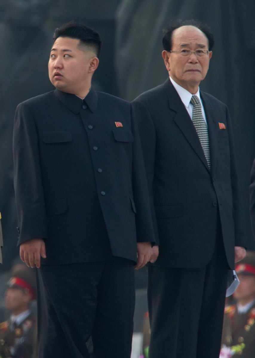 Pyongyang, 15 aprile 2012 – l’anziano capo di Stato Kim Yong-Nam insieme al dittatore Kim Jong-un