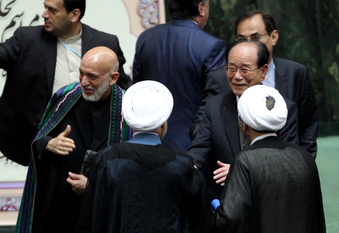 Tehran, 4 agosto 2013 – Kim Yong-nam insieme al presidente dell’Afghanistan Hamid Karzai e a quello dell’Iran Hasan Rowhani