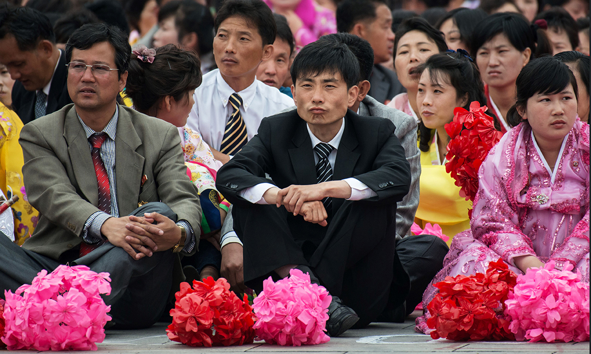 10 maggio 2016. Un uomo in attesa di partecipare alla parata di massa che in piazza Kim Il-Sung a Pyongyang, in Corea del Nord, celebra la fine del 7° congresso del Partito dei lavoratori.