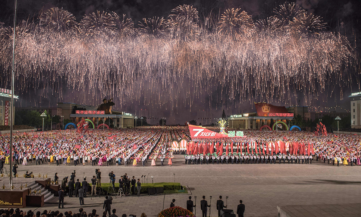 10 maggio 2016. Fuochi d’artificio e spettacoli di luci in piazza Kim Il-Sung a Pyongyang, in Corea del Nord, durante le celebrazioni per la fine del 7° congresso del Partito dei lavoratori.