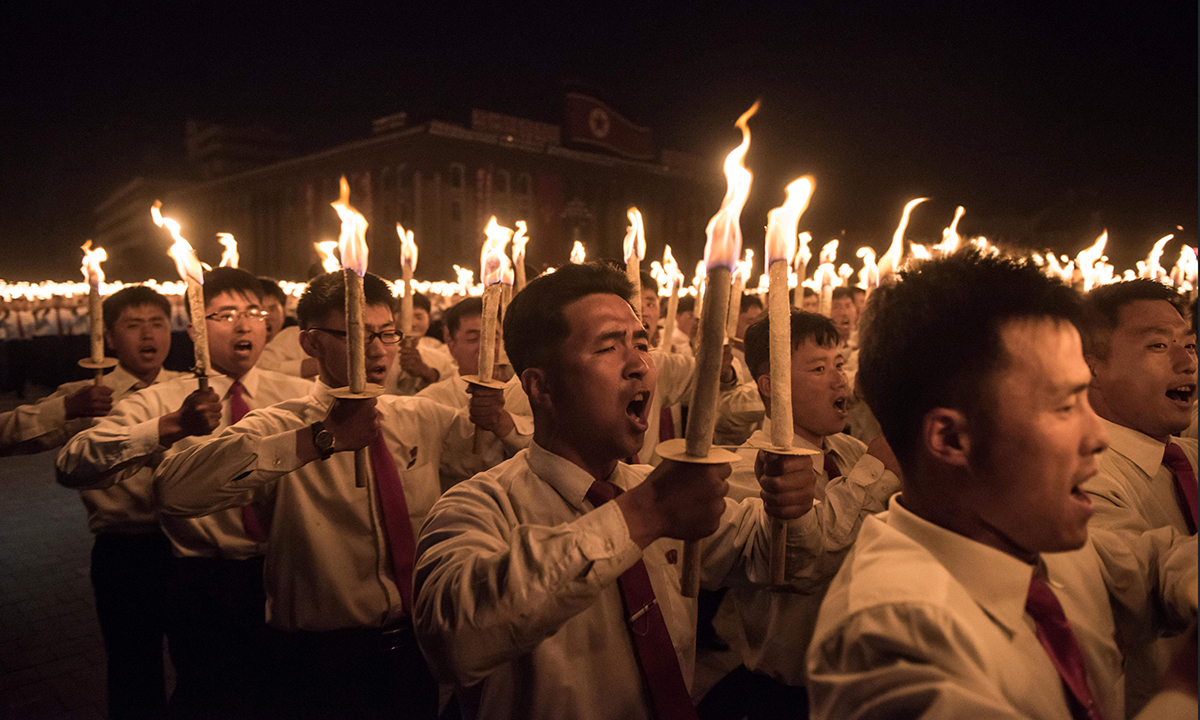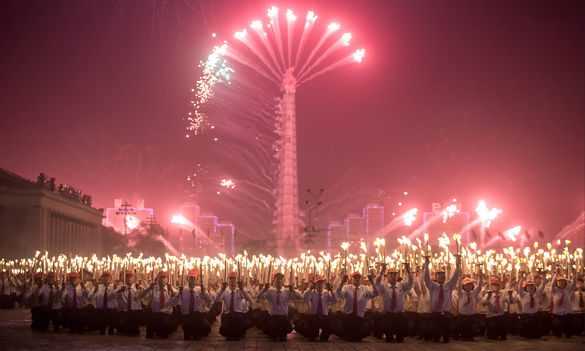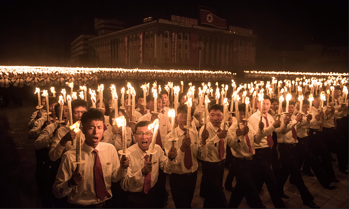 10 maggio 2016. Un momento della parata con fiaccole che in piazza Kim Il-Sung a Pyongyang, in Corea del Nord, ha celebrato la fine del 7° congresso del Partito dei lavoratori.