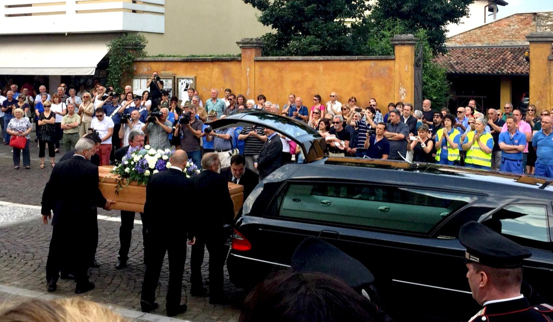 Un momento dei funerali di Cristian Rossi, l’imprenditore friulano ucciso nell’attentato in Bangladesh, Feletto Umberto (Udine), 8 luglio 2016